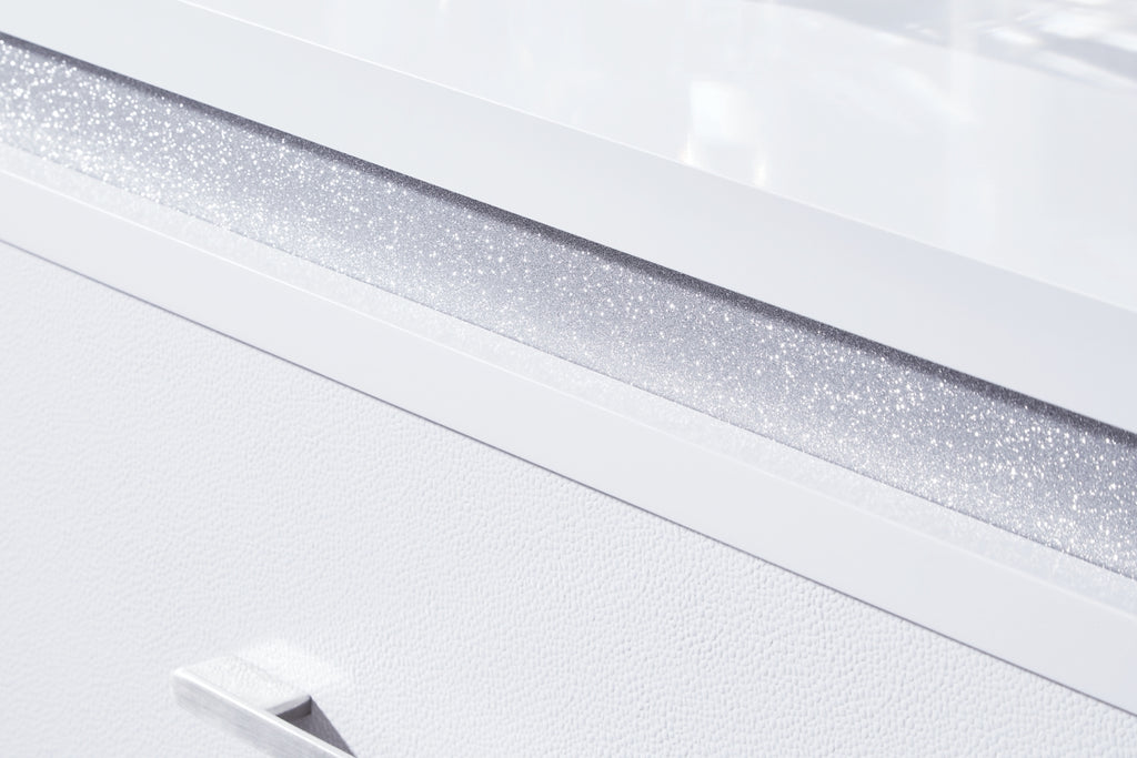 This chest of drawers is a showstopper, bringing a touch of modern glamour to your sanctuary. A sleek white finish and inset glitter accents create a sophisticated feel, while spacious drawers provide practical storage. It’s a simply stunning way to achieve the bedroom of your dreams.