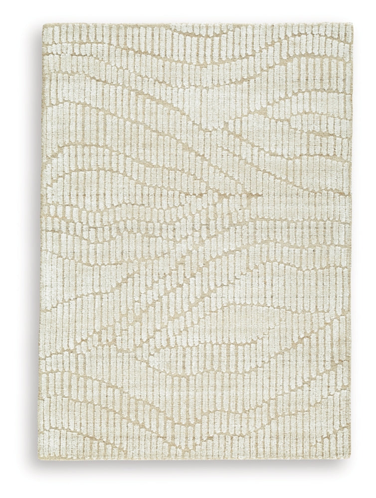 A go-with-the-flow sensibility. With abstract shapes and a simply soothing color palette, this rug is making waves for casual style. Its plush wool and bamboo textile blend masters the art of clean-chic style with a soft touch.