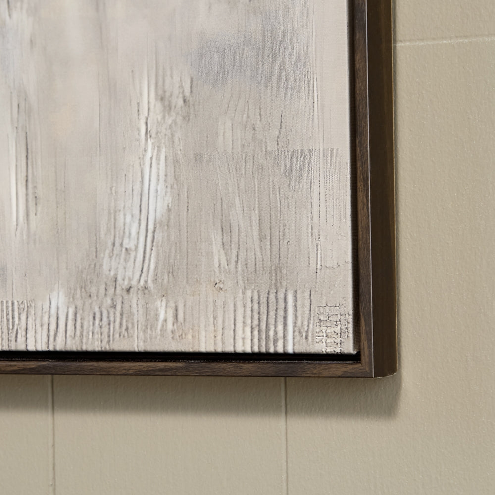 Contemporary neutral hues, reimagined. This wall art's abstract design incorporates movement into your decor, while hand-painted embellishments perfect the look. Need a change of perspective? With the ability to hang the piece four ways, you can switch up its display as desired.