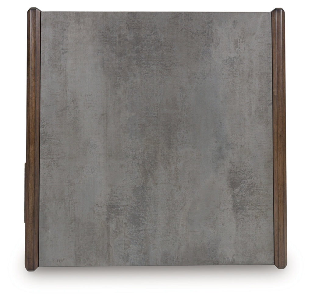 Master the art of mixed-material design with this coffee table. It sports an urban vibe, with faux cement lending an industrial edge to the contrasting dark brown finish. For a functional touch, spacious drawers store essentials for living room lounging in style. Detailed mouldings on the side add even more cool character.