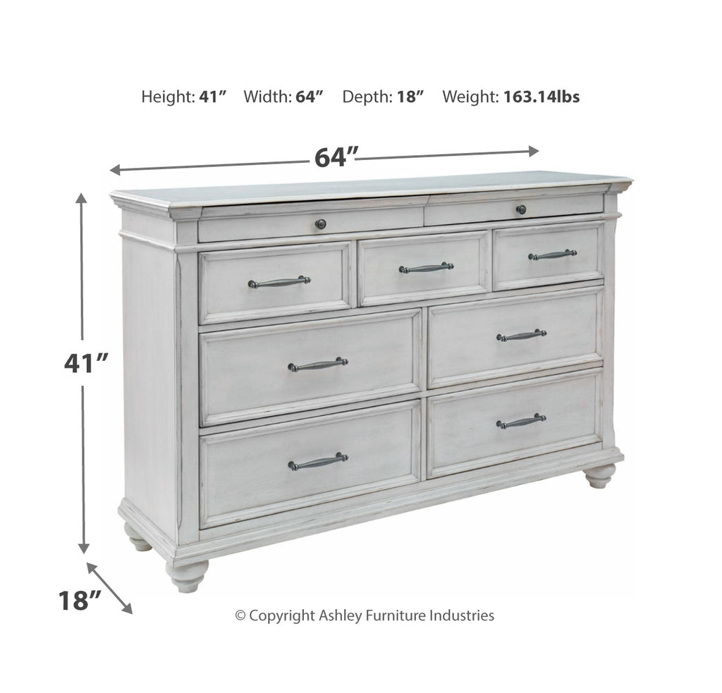 • Dresser with 7 smooth-gliding drawers, plus 2 small-scaled accessory drawers (dresser only; mirror sold separately)