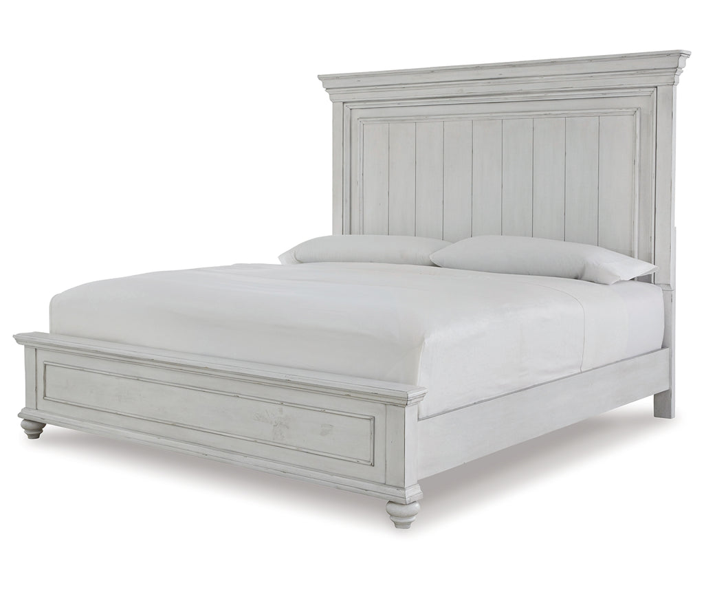 Give your retreat vintage charm with this bedroom set in a beautifully distressed whitewash finish. You'll love the headboard's grand style featuring a picture framed panel. Generously scaled moulding, framed drawer fronts and bun feet enhance the character of this bedroom set—evoking the feel of a quaint cottage escape.
