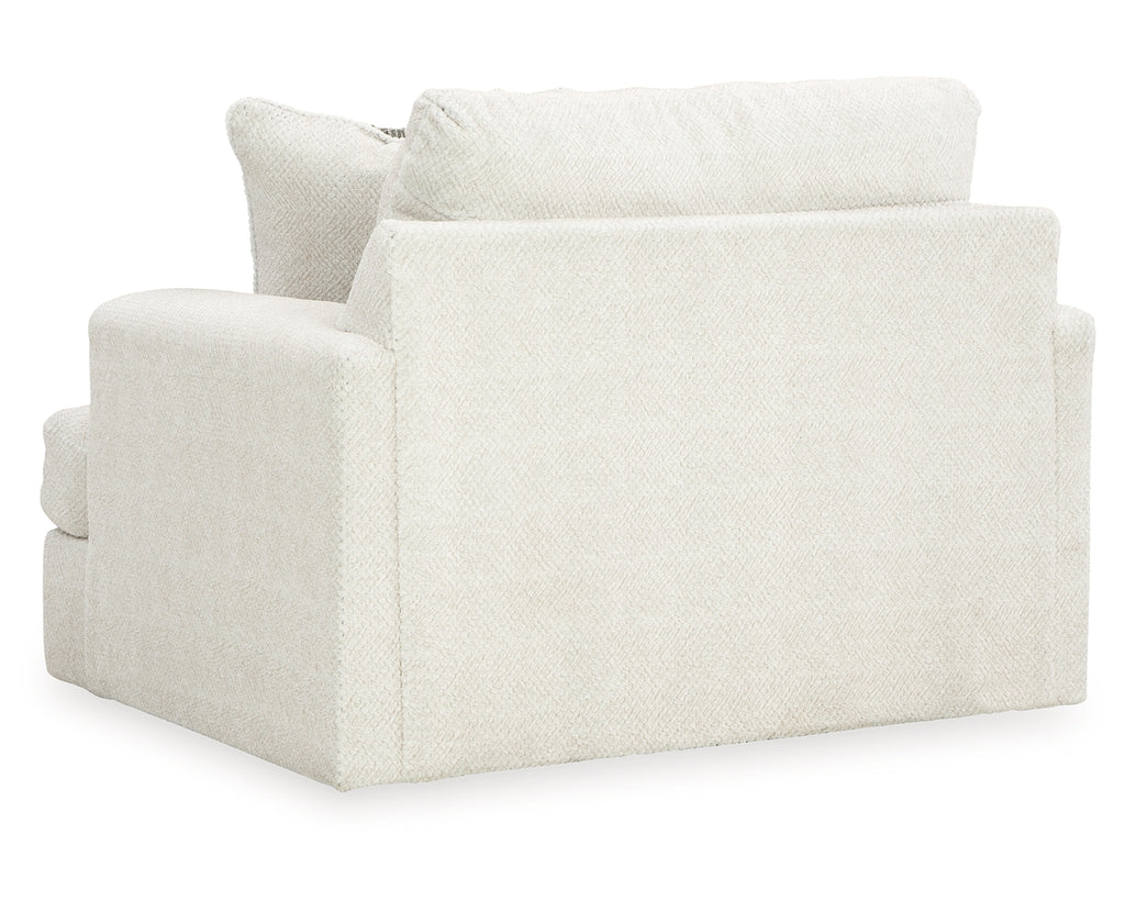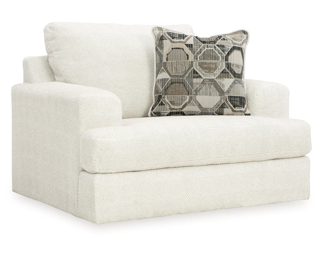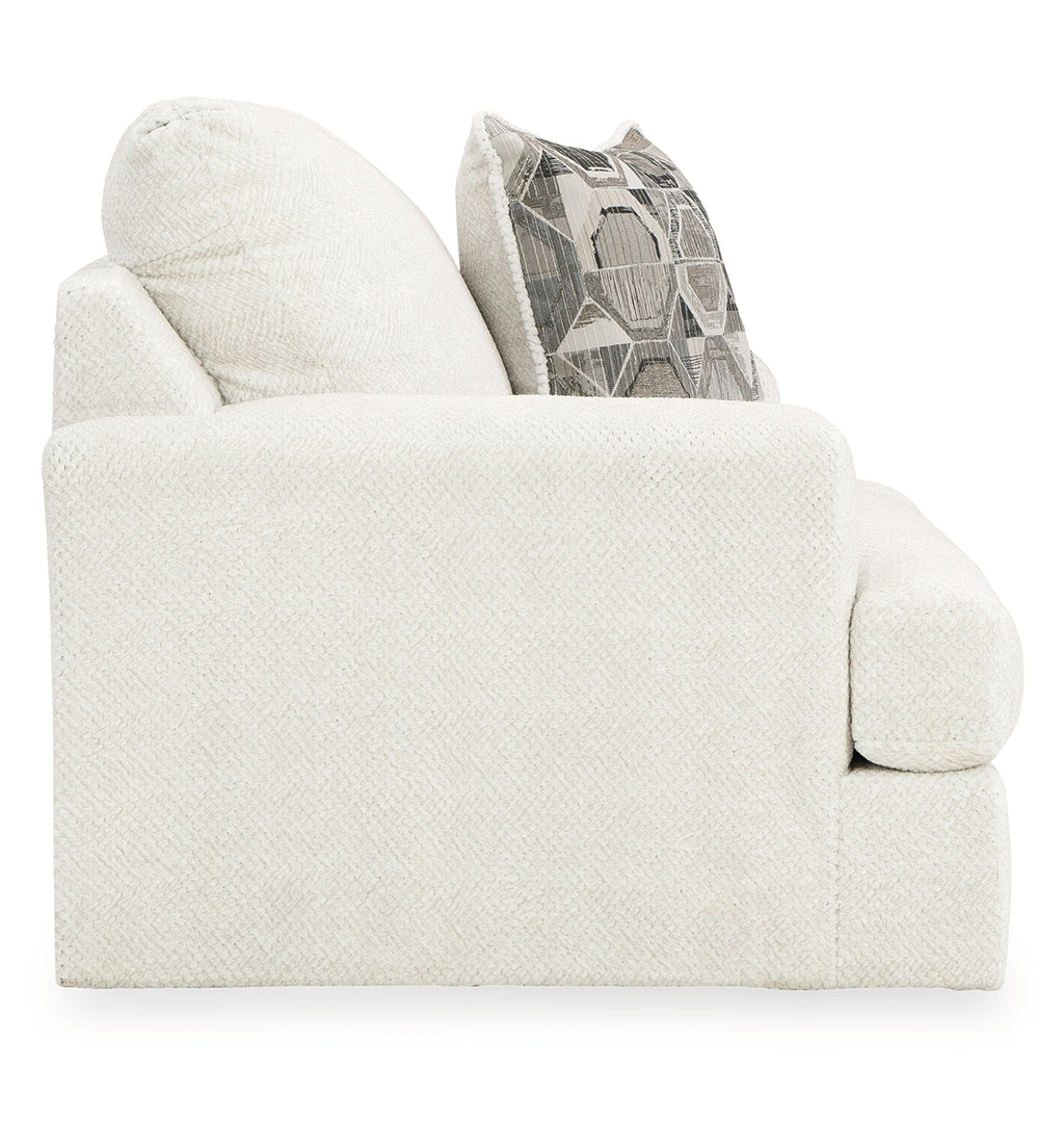 Craving casual refinement? This oversized chair has you covered. The decidedly contemporary frame cradles sizable cushions in an ultra-soft neutral hue, lightening the mood in your living room with simple style and everyday comfort. A geometric accent pillow perfects the chic-meets-cozy vibe.