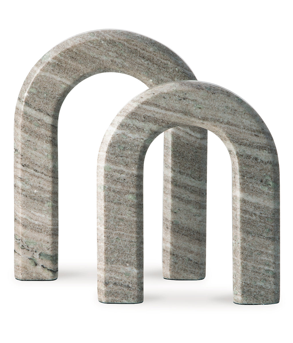 Timeless with its architectural silhouette, this sculpture set elevates your decor with the beauty of natural stone. The taupe marble construction is equally classic and contemporary. Displayed together or placed separately, these pieces maintain a refined look.