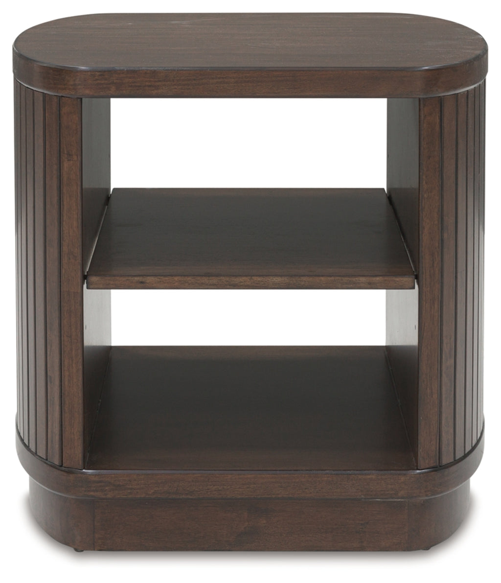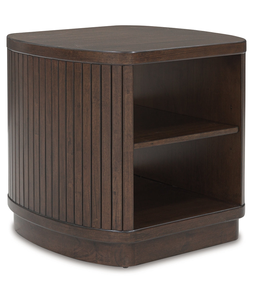 This richly finished end table makes life easy—in a casual contemporary kinda way. When you're relaxing on the couch, this piece makes reaching for the remote or a snack a breeze. A spacious lower shelf is ideal for displaying treasures.