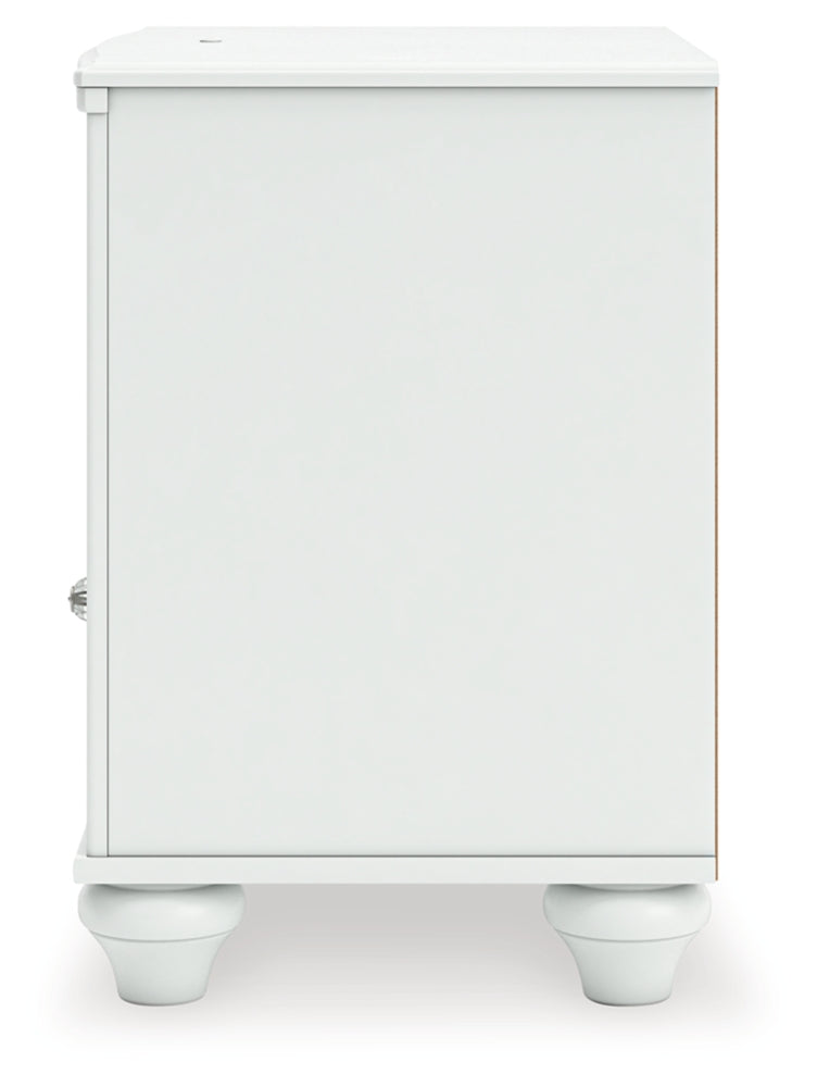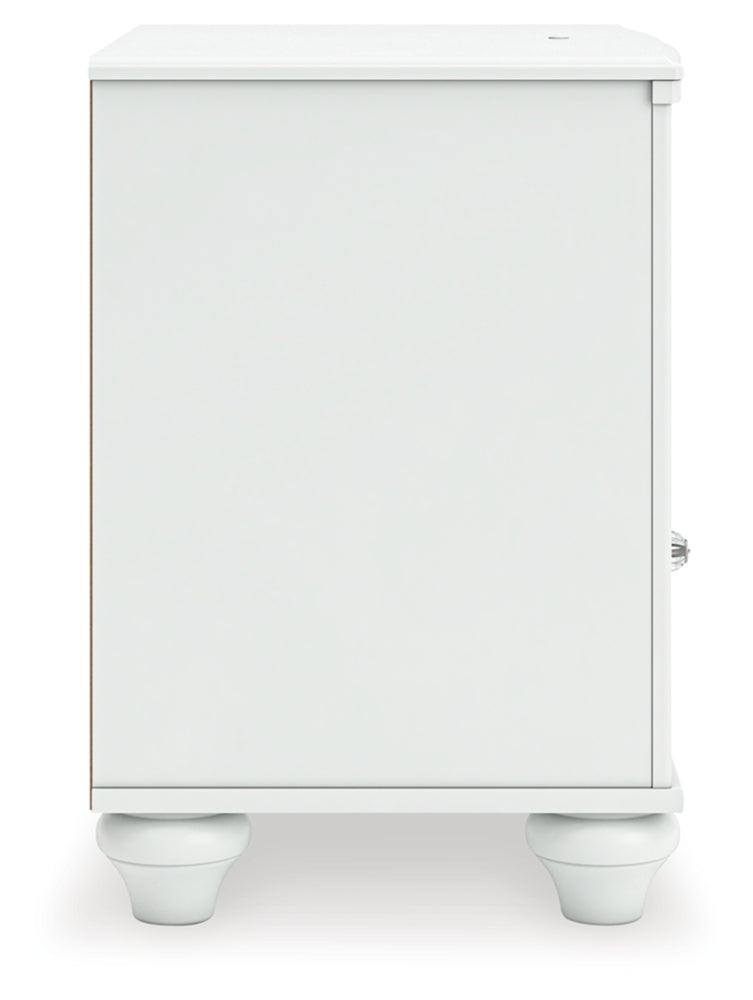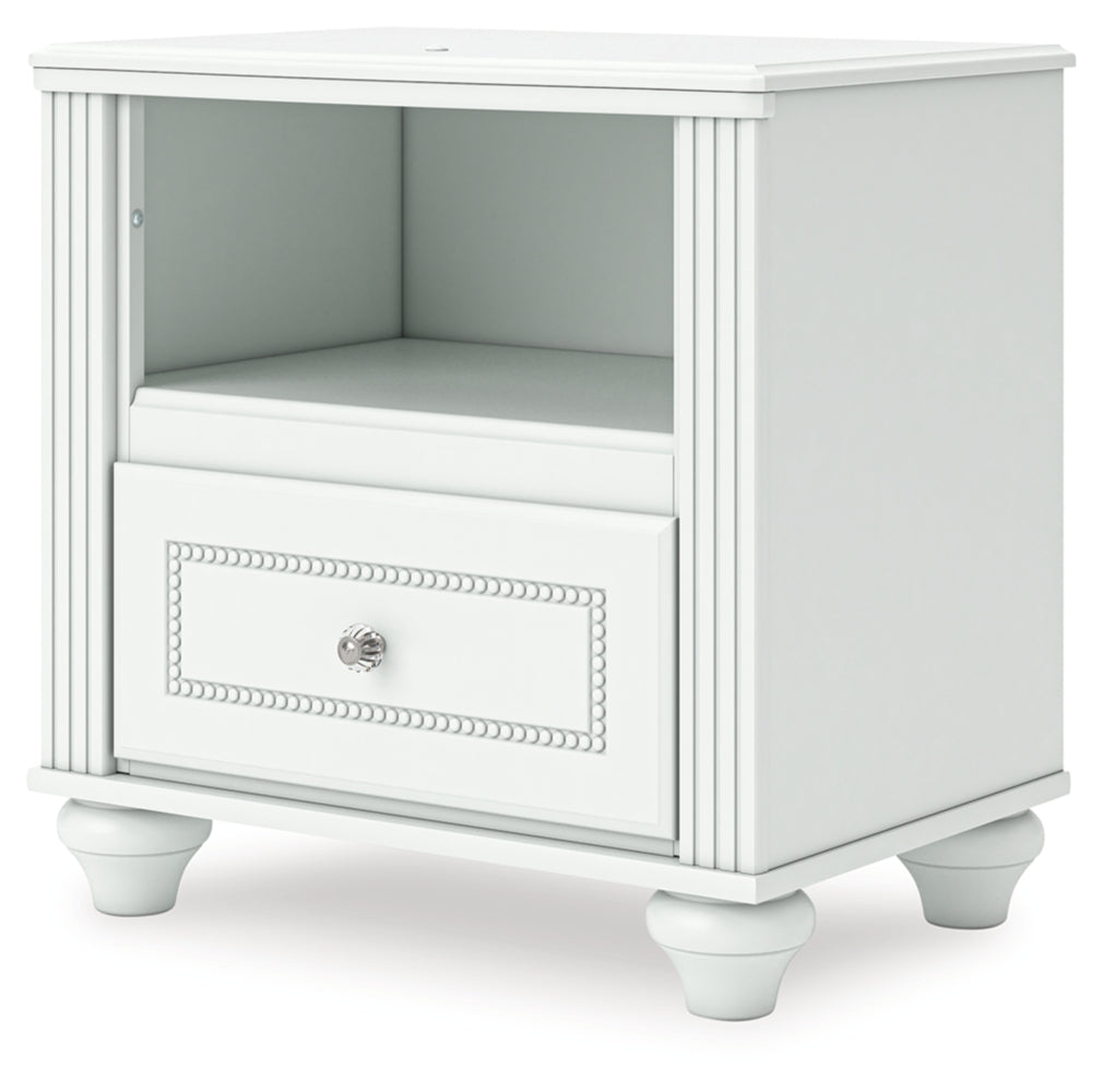 Fit for a princess. This nightstand’s crisp matte white finish pairs with charming ornate beading details and bun feet—perfect for your girly girl. Multicolored LED lighting and built-in USB charging are the crowning touches to make your little one feel like royalty.