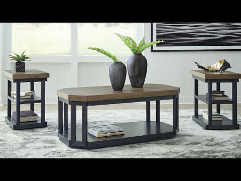 This accent table set combines casual contemporary design with modern appeal. With thick-bodied wood-tone tabletops and on-trend slate blue frames and shelves, these tables are a smart choice on so many levels. And casters on the coffee table's legs make it easily mobile for quick room transformations. This three-in-one pack is more than just nice furniture anchoring your sofa.