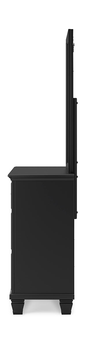 Lanolee Twin Panel Bed with Mirrored Dresser