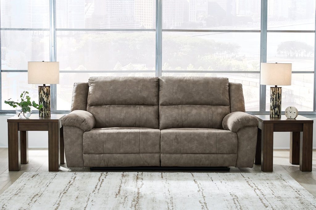 Is being too comfortable even possible? It’s worth finding out in this reclining sofa. Wrapped in the plushest of neutral faux leather upholstery, it's perfectly cushioned in all the right places. We love the sofa's super-wide seating, with plenty of room for up to three. And its effortless reclining elevates your comfort level into the stratosphere.