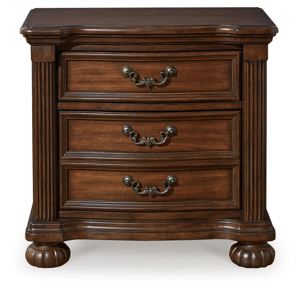 Take inspiration from the traditional luxury of this bedroom package. Classic with a rich cherry brown finish, its stately presence graces your room with an air of opulence. Stunning decorative details add an exquisite touch. Your restful retreat has never been so refined.
