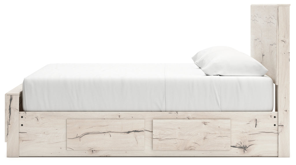 Features- Includes panel headboard, footboard, 2 under bed storage units and roll slats