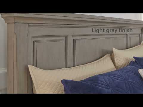 Satisfying your taste for tradition, this 8-piece bedroom set sports serene sophistication. Forever classic design details—inlaid panels, silvertone patina hardware and bun feet—are so easy to love. A burnished light gray finish elevates the look with modern sensibility.