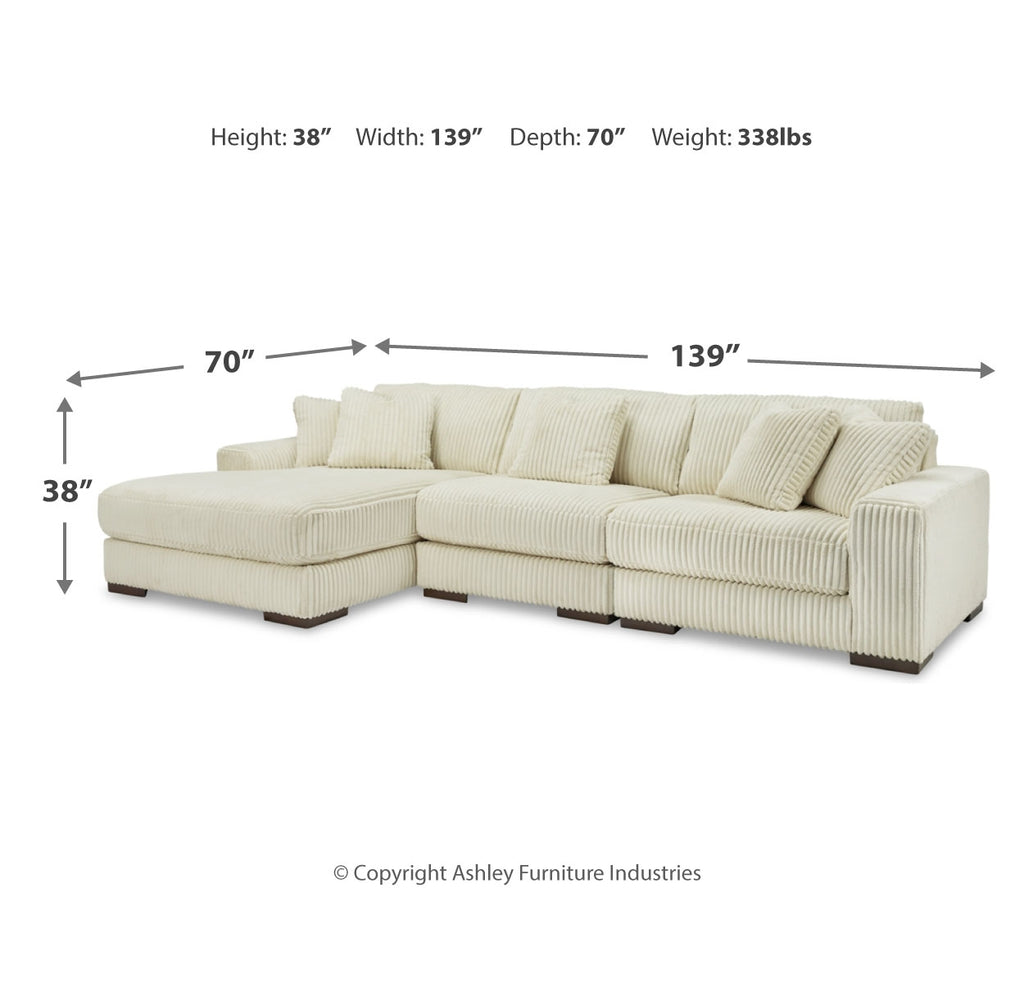 • Includes 3 pieces: left-arm facing corner chaise, armless chair and right-arm facing corner chair