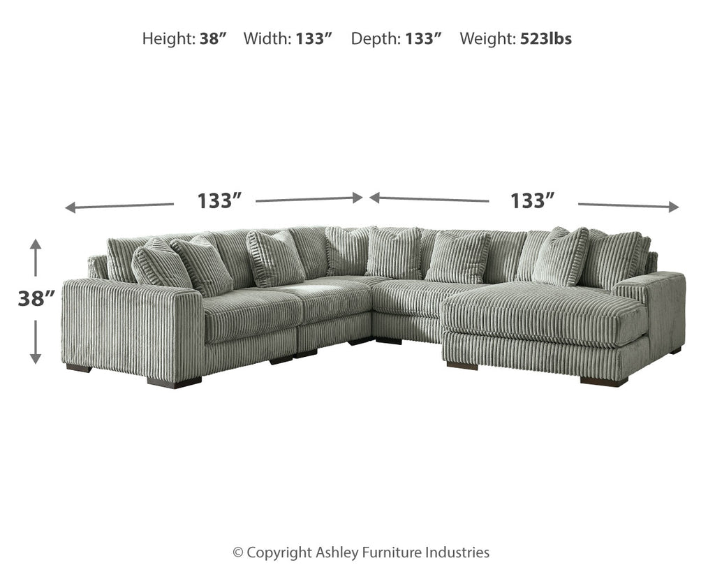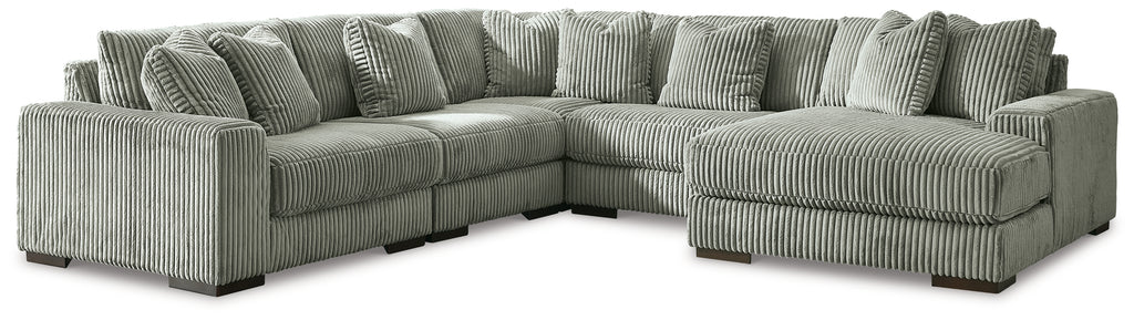 Features- Includes 5 pieces: left-arm facing corner chair, wedge, 2 armless chairs and right-arm facing corner chaise
