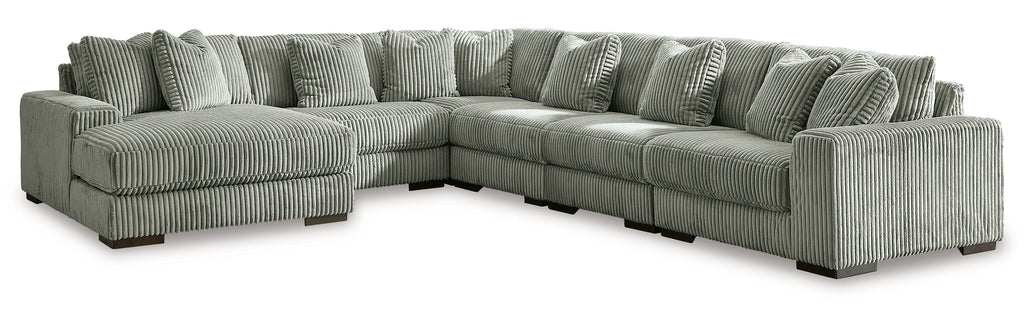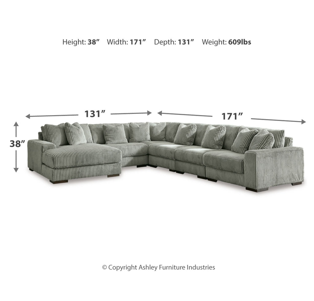 • Includes 6 pieces: left-arm facing corner chaise, wedge, 3 armless chairs and right-arm facing corner chair