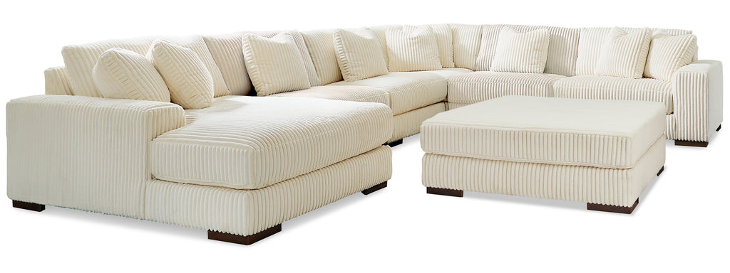 • Includes 6 pieces: left-arm facing corner chaise, wedge, 3 armless chairs and right-arm facing corner chair