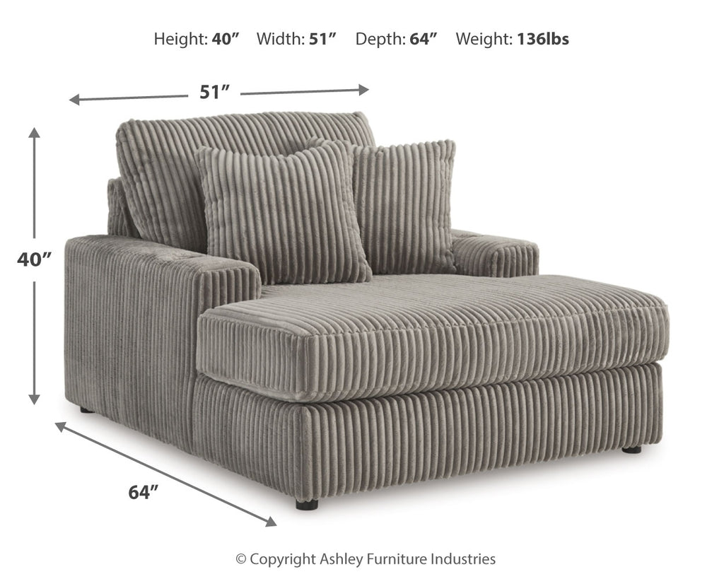 Plush and posh. Showcase your eye for on-trend texture with the statement-making cord upholstery of this chaise. Its stunningly soft fabric entices in an ivory hue, complementing contemporary color palettes. Sink into the cushions and plan to stay a while—this cozy oversized chaise highlights your high-end approach to comfort and style.