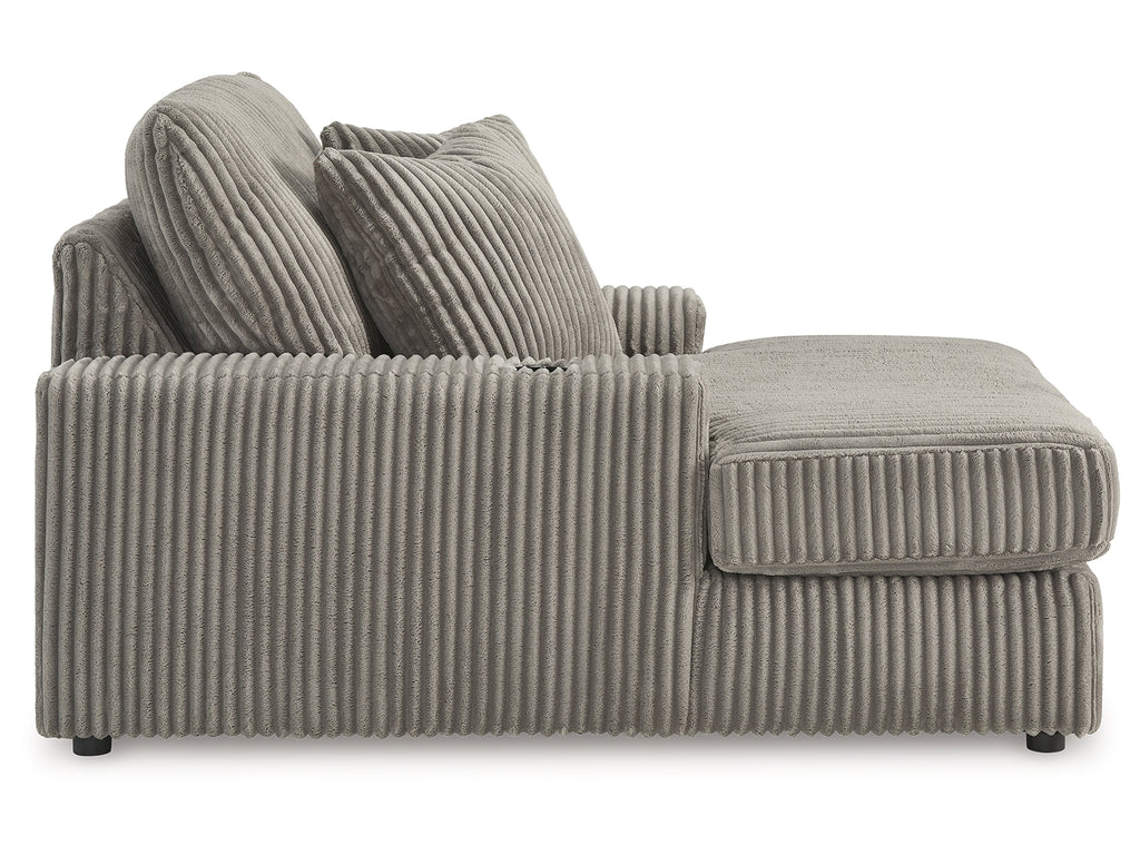 Plush and posh. Showcase your eye for on-trend texture with the statement-making cord upholstery of this chaise. Its stunningly soft fabric entices in a warm neutral hue, complementing contemporary color palettes. Sink into the cushions and plan to stay a while—this cozy oversized chaise highlights your high-end approach to comfort and style.