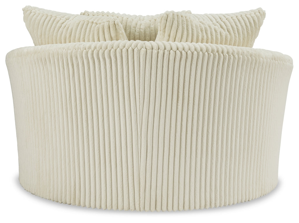 Plush and posh. Showcase your eye for on-trend texture with the statement-making cord upholstery of this oversized swivel accent chair. Its stunningly soft fabric entices in a warm neutral hue, complementing contemporary color palettes. Sink into the spacious cushion and plan to stay a while—this cozy living room chair highlights your high-end approach to comfort and style.