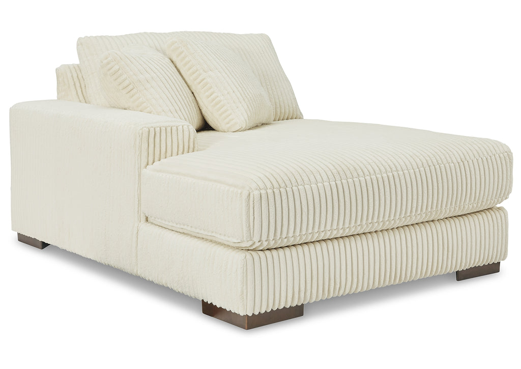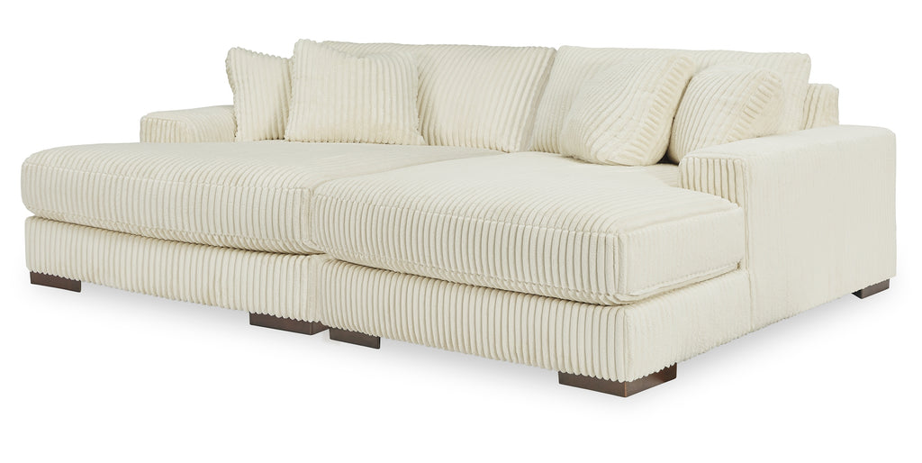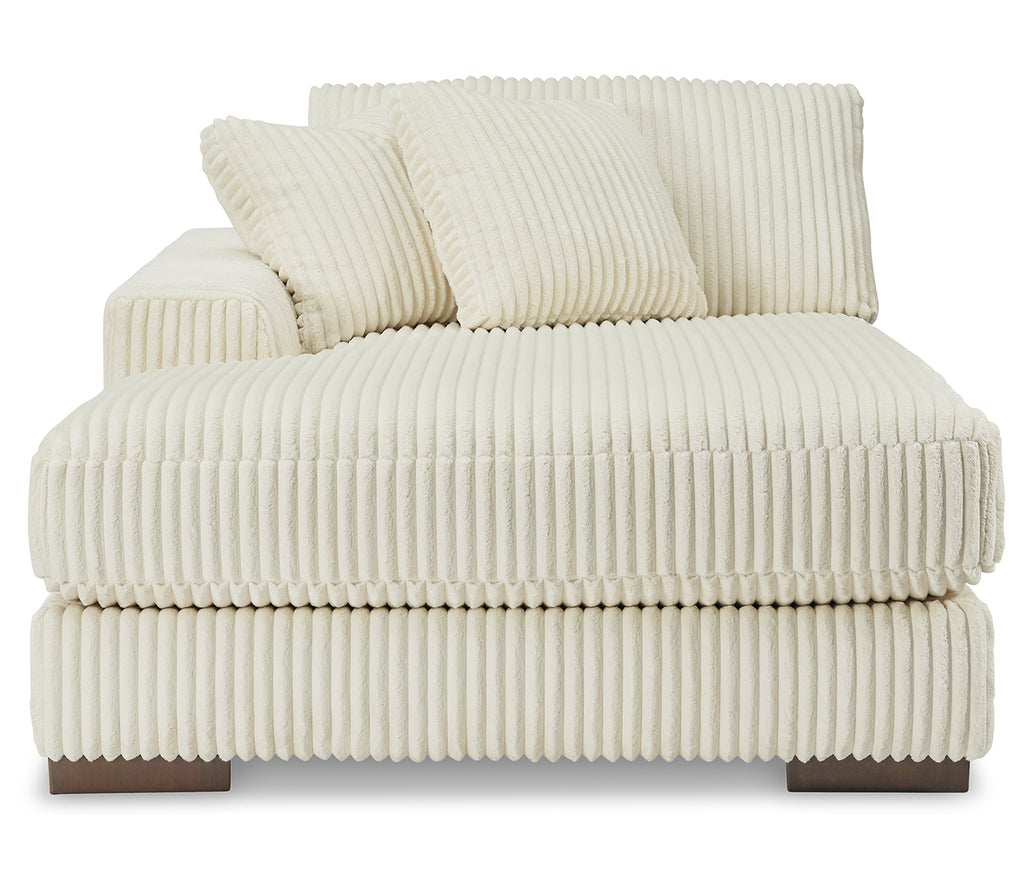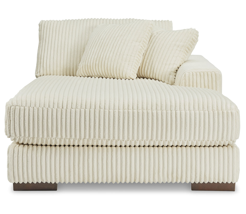 Plush and posh. Showcase your eye for on-trend texture with the statement-making cord upholstery of this double-chaise sectional. Its stunningly soft fabric entices in an ivory hue, complementing contemporary color palettes. Sink into the cushions and plan to stay a while—this cozy living room centerpiece highlights your high-end approach to comfort and style.