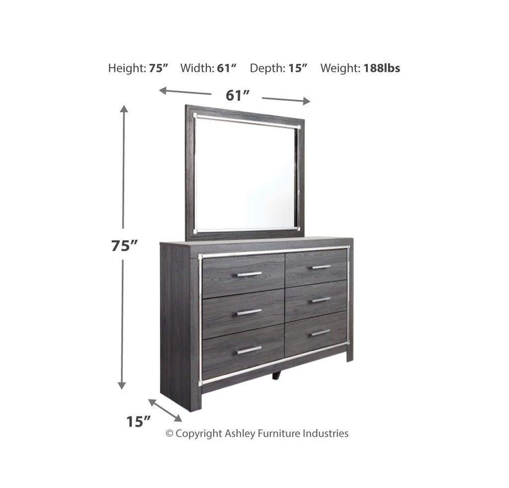 Lodanna King Panel Bed with 2 Storage Drawers with Mirrored Dresser