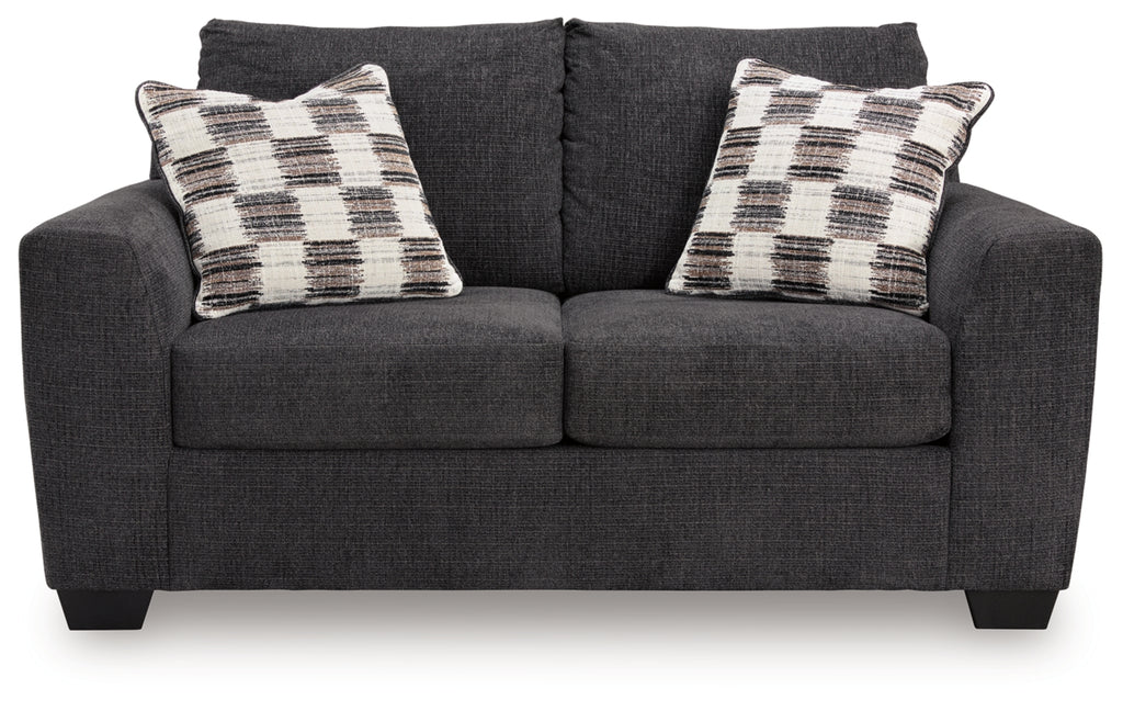 This loveseat personifies contemporary comfort. Its clean-lined frame and neutral color lend must-have versatility. Softly textured fabric makes it that much more inviting. A welcome combination of chic style and a cozy feel, this piece completes your living room with modern flair.