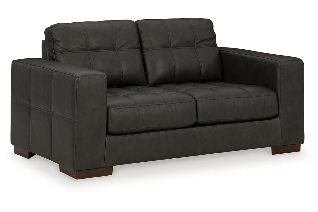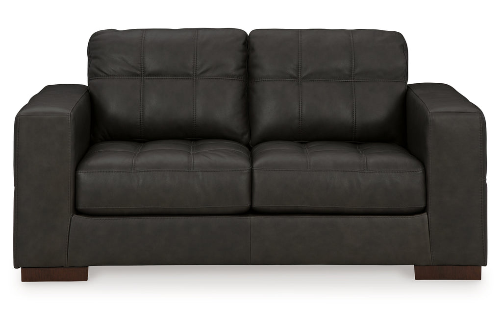 Casual and contemporary, this loveseat suits those with a keen eye for everyday luxury. Its expertly matched leather and faux leather upholstery is filled with depth and dimension, incorporating an inviting sense of masculine character. With tufting details and a linear silhouette solidifying its chill vibe, all that’s left to do is sit back and relax.