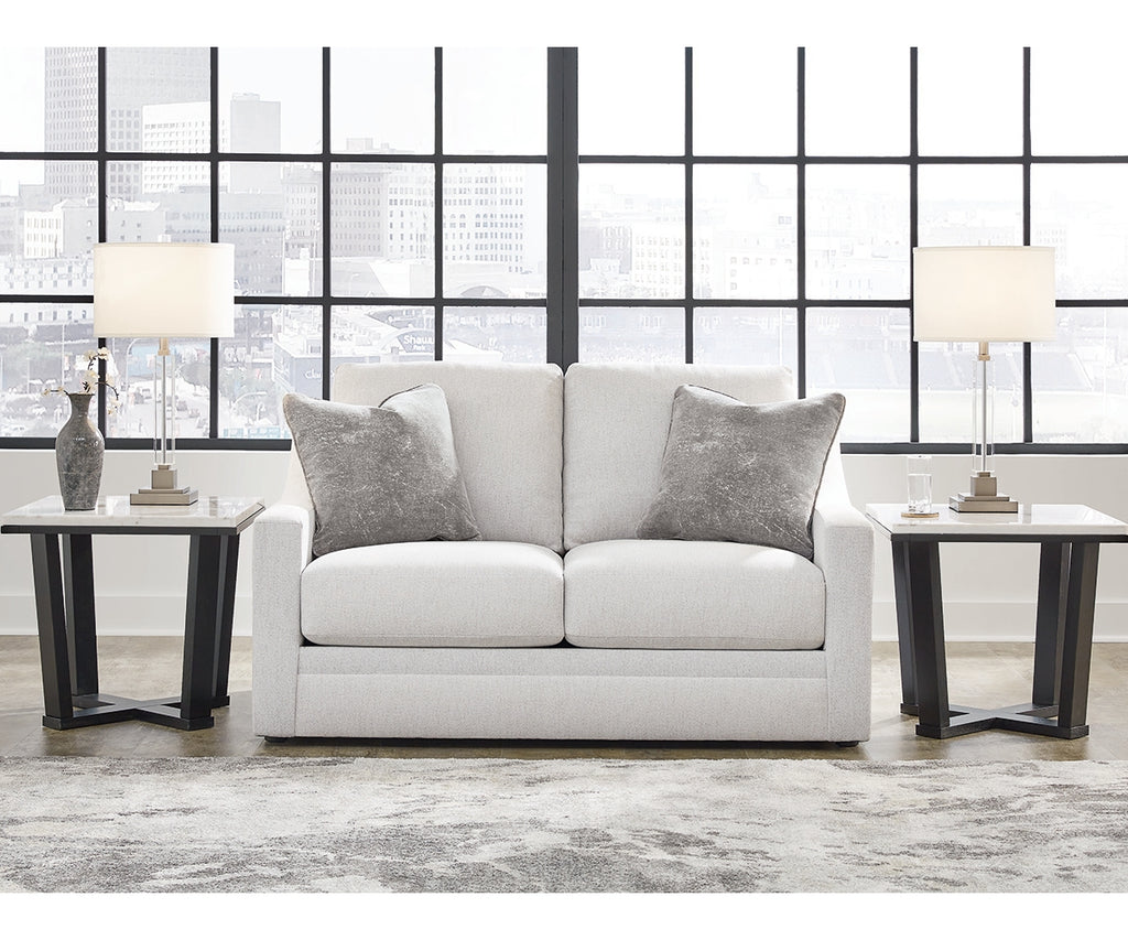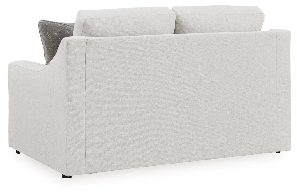 Clean lines and a streamlined silhouette define the architectural attitude of this loveseat. Textured accent pillows in complementary colors add subtle contrast. The loveseat's plush reversible cushions beckon you to sit down, get comfy and relax completely.