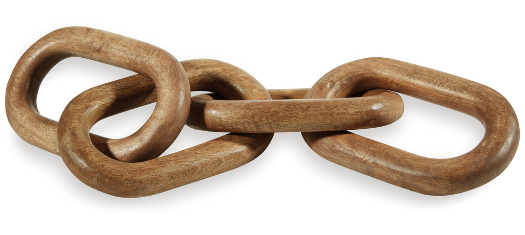 This sculpture sets the standard for casually cool art. Interlocking wood rings in a natural brown finish add an organic element to your decor. When displayed on a TV stand or fireplace mantel, or draped across a stack of books, it's such an impressive focal point.