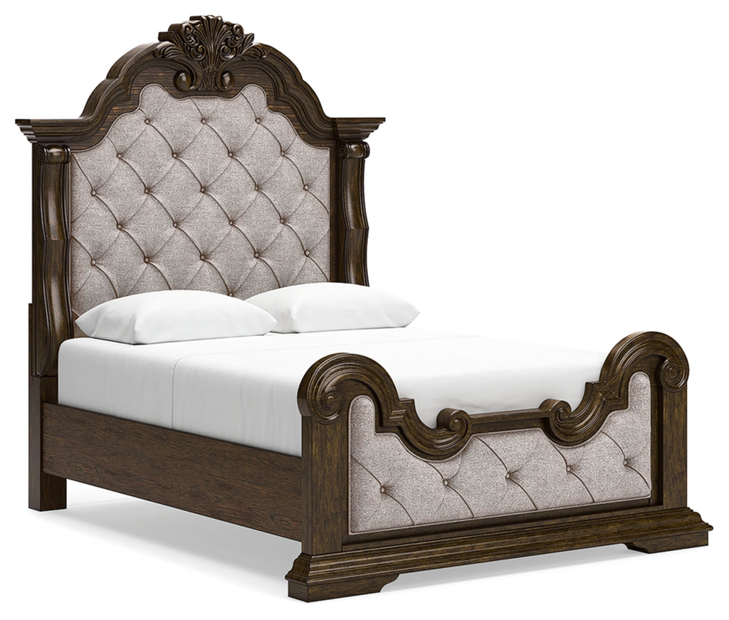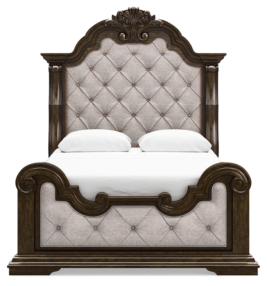 From its ornamental appliques to its large scale, this California king upholstered bed makes a bold statement. Showcasing sculptural ornate details and button tufting, this opulent bed wows with stunning style. The look is timeless. The feel? Right at home.