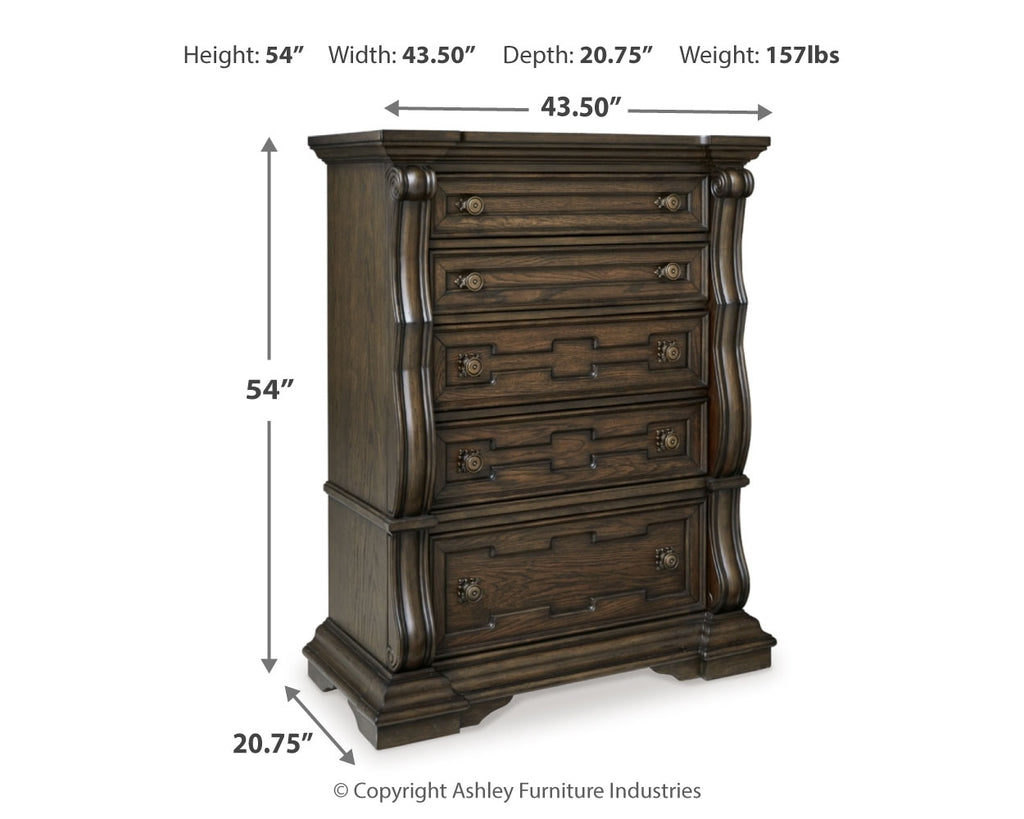 From its ornamental appliques to its large scale, this bedroom package makes a bold statement. Showcasing sculptural ornate details, this opulent set wows with stunning style. The look is timeless. The feel? Right at home.