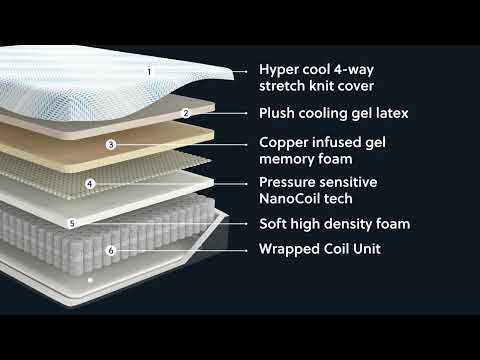 Discover the luxury of this hybrid plush mattress. A layer of cooling gel latex and two layers of temperature-regulating material keep you at a comfortable temperature all night long. Copper-infused memory foam contributes to the cooling performance. Contouring comfort foam and wrapped coils deliver amazing support, pressure relief and comfort. In addition, the premium pressure-sensitive NanoCoil unit and individually wrapped coil pack help to provide a great night's sleep.