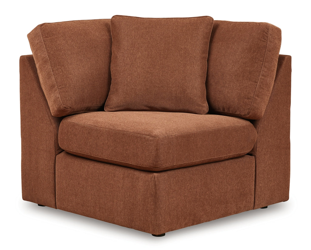 - Includes 6 modular pieces: left-arm facing corner chair, 2 armless chairs, console with storage, wedge and right-arm facing corner chaise