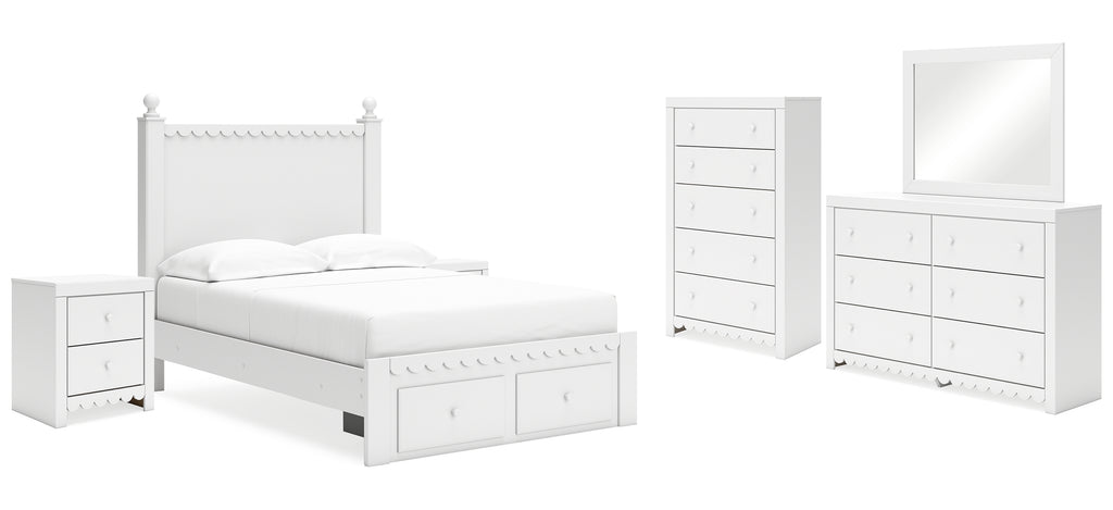 Mollviney Full Panel Storage Bed with Mirrored Dresser, Chest and 2 Nightstands