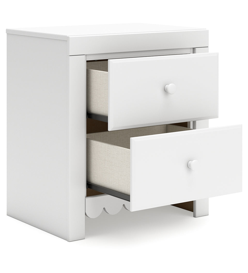 Make morning or bedtime that much more magical with this bedroom package. Charmingly cute with its scalloped detailing, it appeals to both her sense of playful whimsy and your love for modern design. A crisp white finish gives you the versatility to pair the set with existing decor.