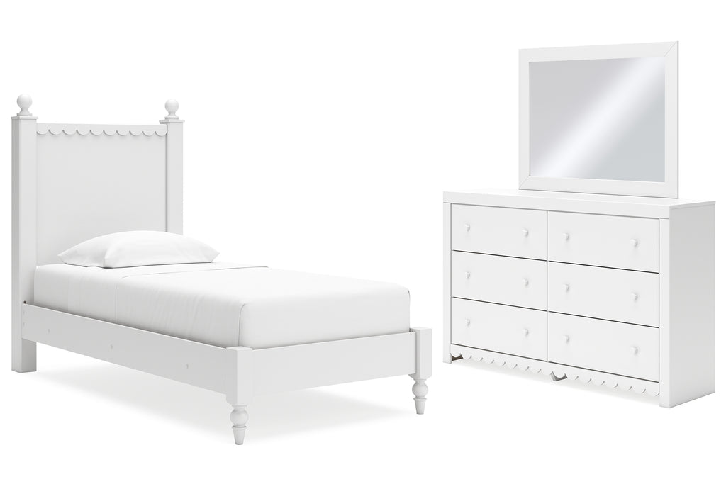 Mollviney Twin Panel Bed, Dresser and Mirror