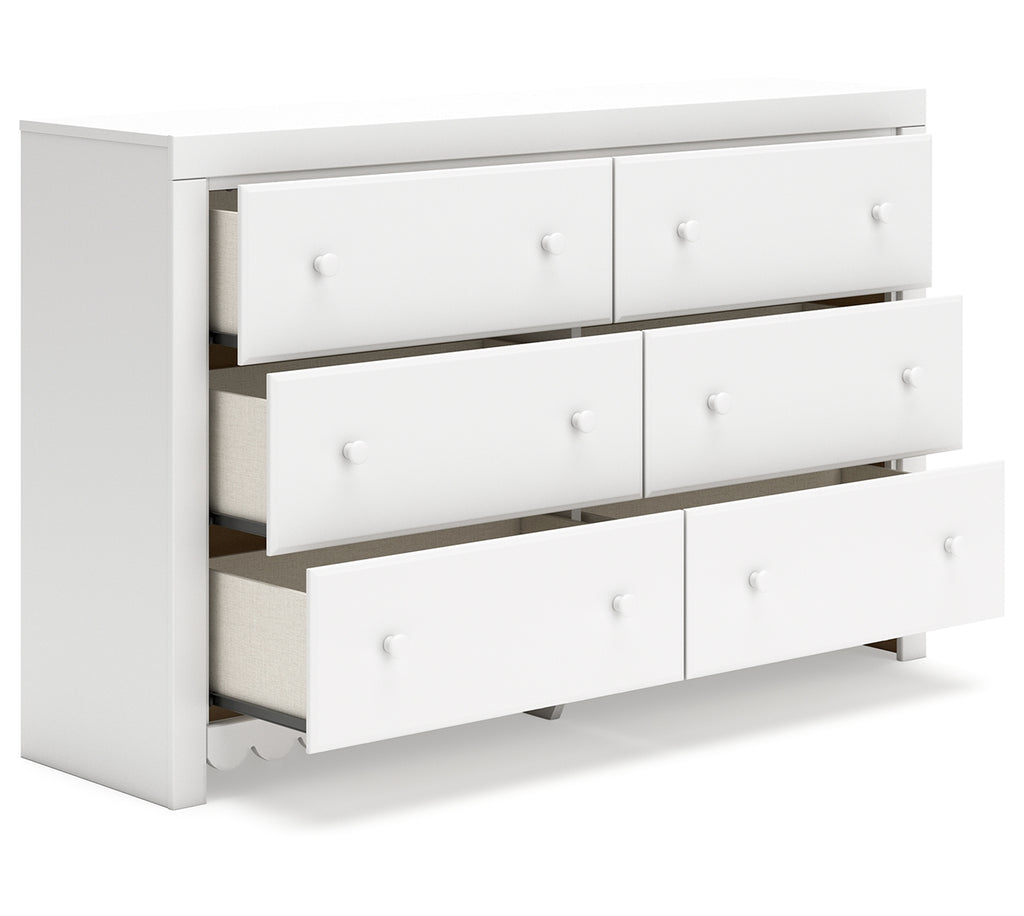 Make morning or bedtime that much more magical with this bedroom set. Charmingly cute with its scalloped detailing, it appeals to both their sense of playful whimsy and your love for modern design. And the crisp white finish gives you the versatility to pair it with existing decor.
