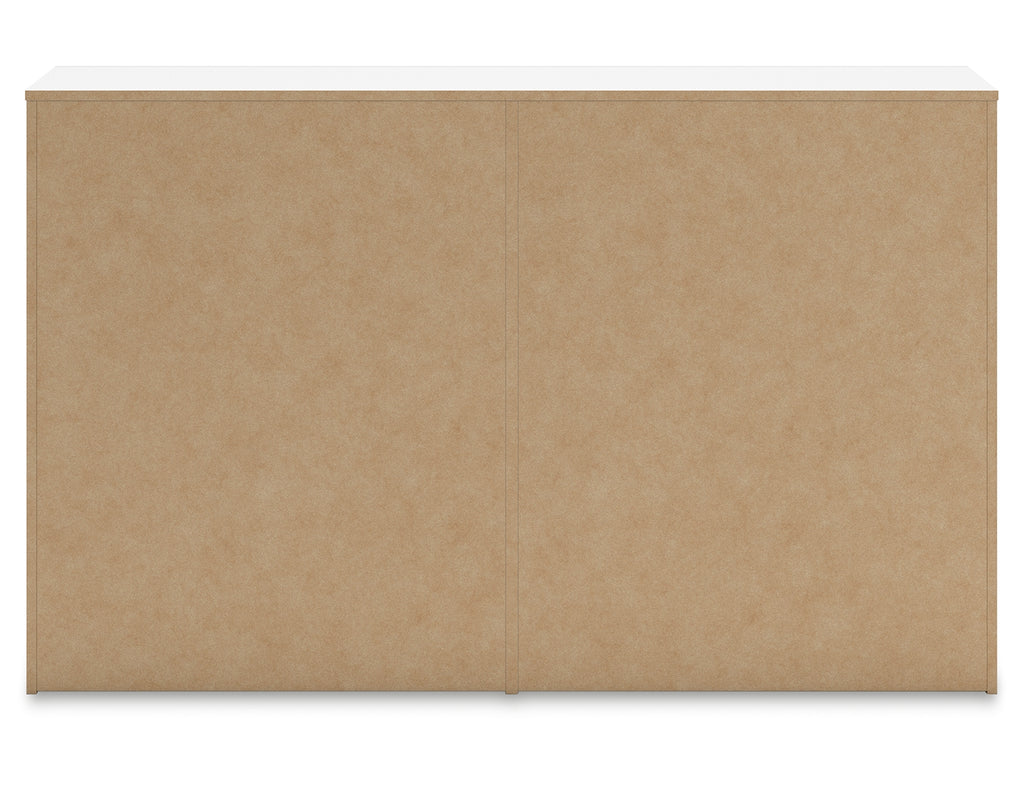 • Drawer interiors are lined with a faux linen laminate for a clean, finished look