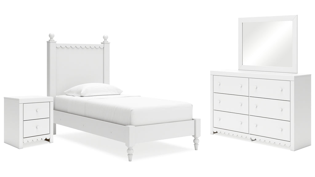 Mollviney Twin Panel Bed with Mirrored Dresser and Nightstand