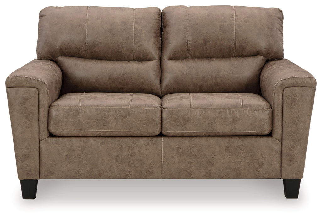 This decidedly modern seating package proves less is more, bringing simply inviting style to your living room. Take the guesswork out of decorating—the set’s warm faux leather has a universal appeal, pairing with casual and contemporary aesthetics alike. All you need to do is sit back, relax and enjoy the comforts of home.