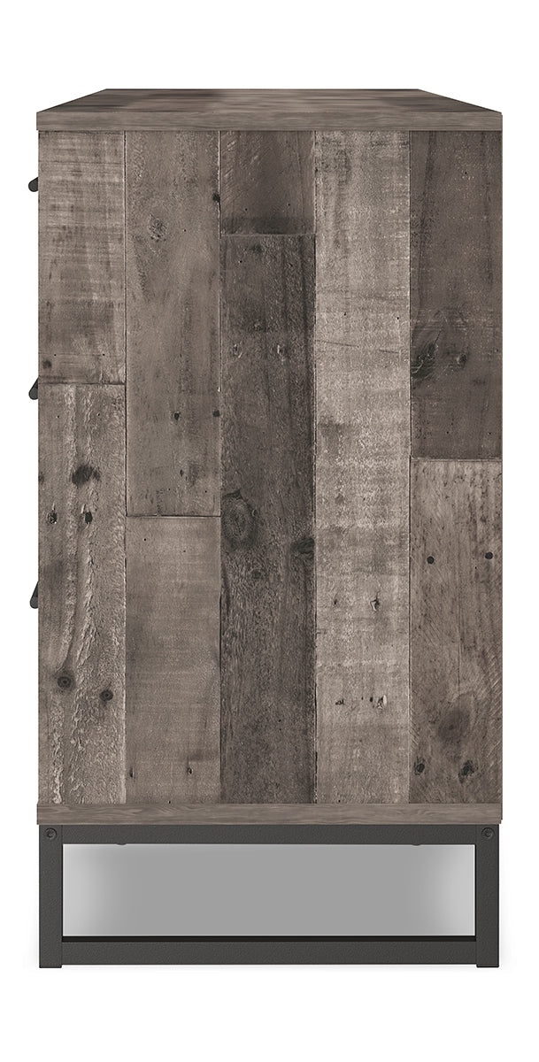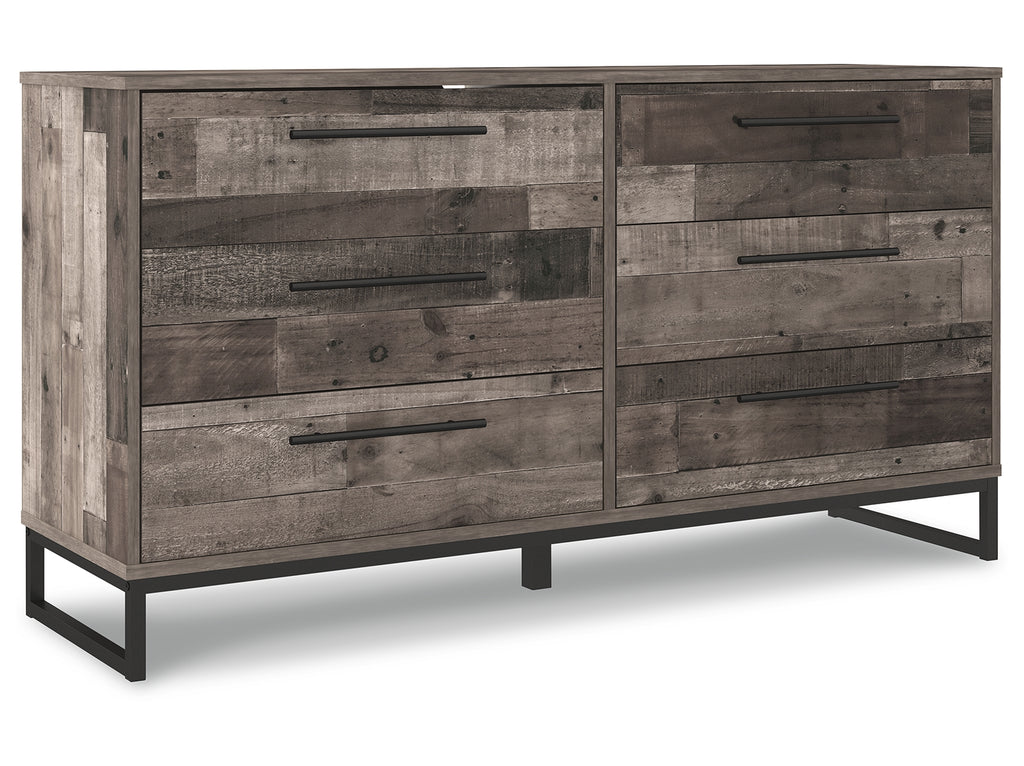 Streamlined design and a stunning finish come together in one simply extraordinary piece. This dresser is sure to impress with six smooth-operating drawers, canted metal legs and a rustic butcher block finish over replicated pine grain texture. Its mid-century style is a nod to the past, while the updated finish keeps it solidly in the present.