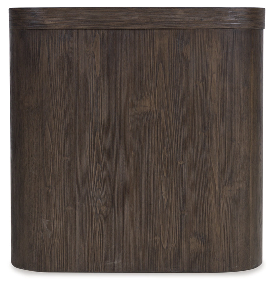 Elevate the everyday with this end table. A rich medium brown finish brings added flexibility, complementing a variety of casual contemporary color schemes. Rounded corners soften the look, while drawers invite miscellaneous storage. Adding chic sofa-side form and function, this table lends an approachably luxe vibe to your space.