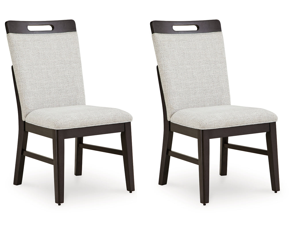 This dining chair set is the perfect blend of modern and contemporary styles. Its easy-clean Nuvella® upholstery remains vibrant and resists stains, while a fun and functional peek-a-boo handle keeps it relevant and on trend. Incorporating high style and low maintenance, this is a piece you’ll enjoy for years.