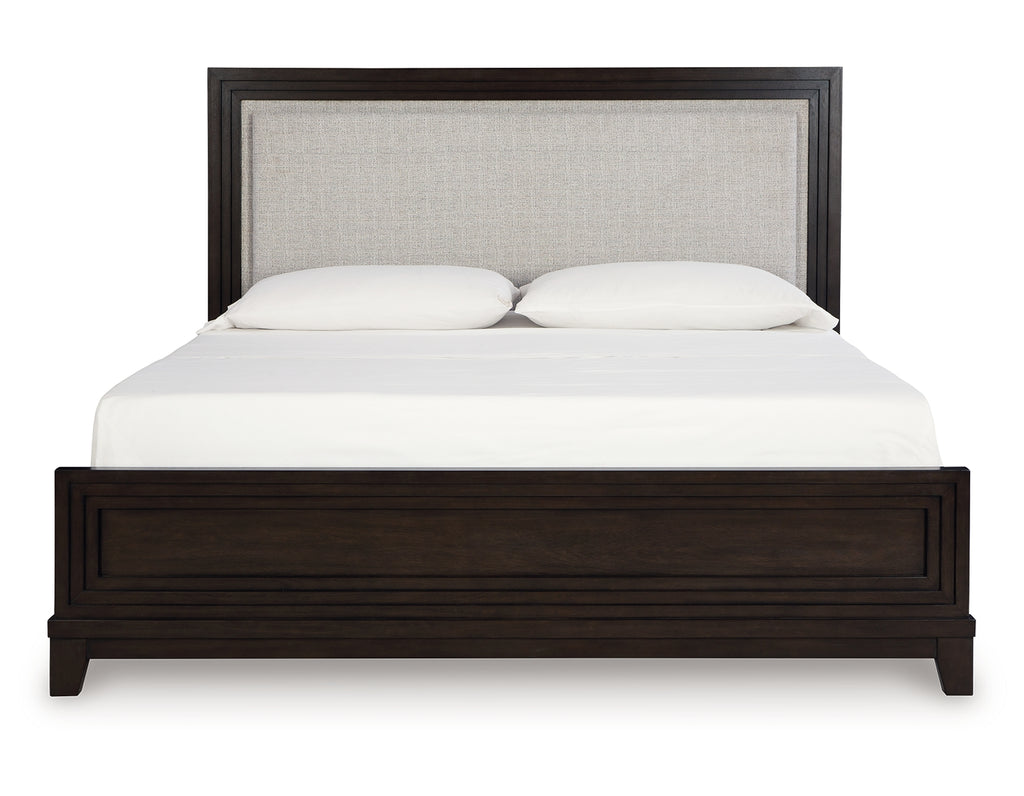 Neymorton King Upholstered Panel Bed with Dresser and 2 Nightstands