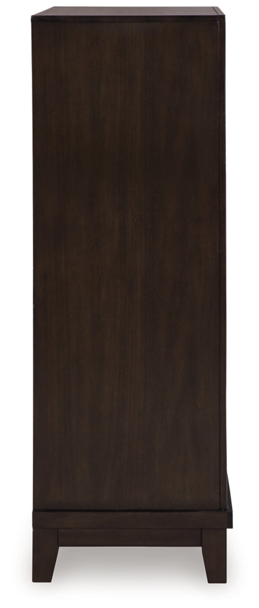 • 5 smooth-gliding drawers with dovetail construction and heavy duty ball-bearing side glides (top drawers felt lined)