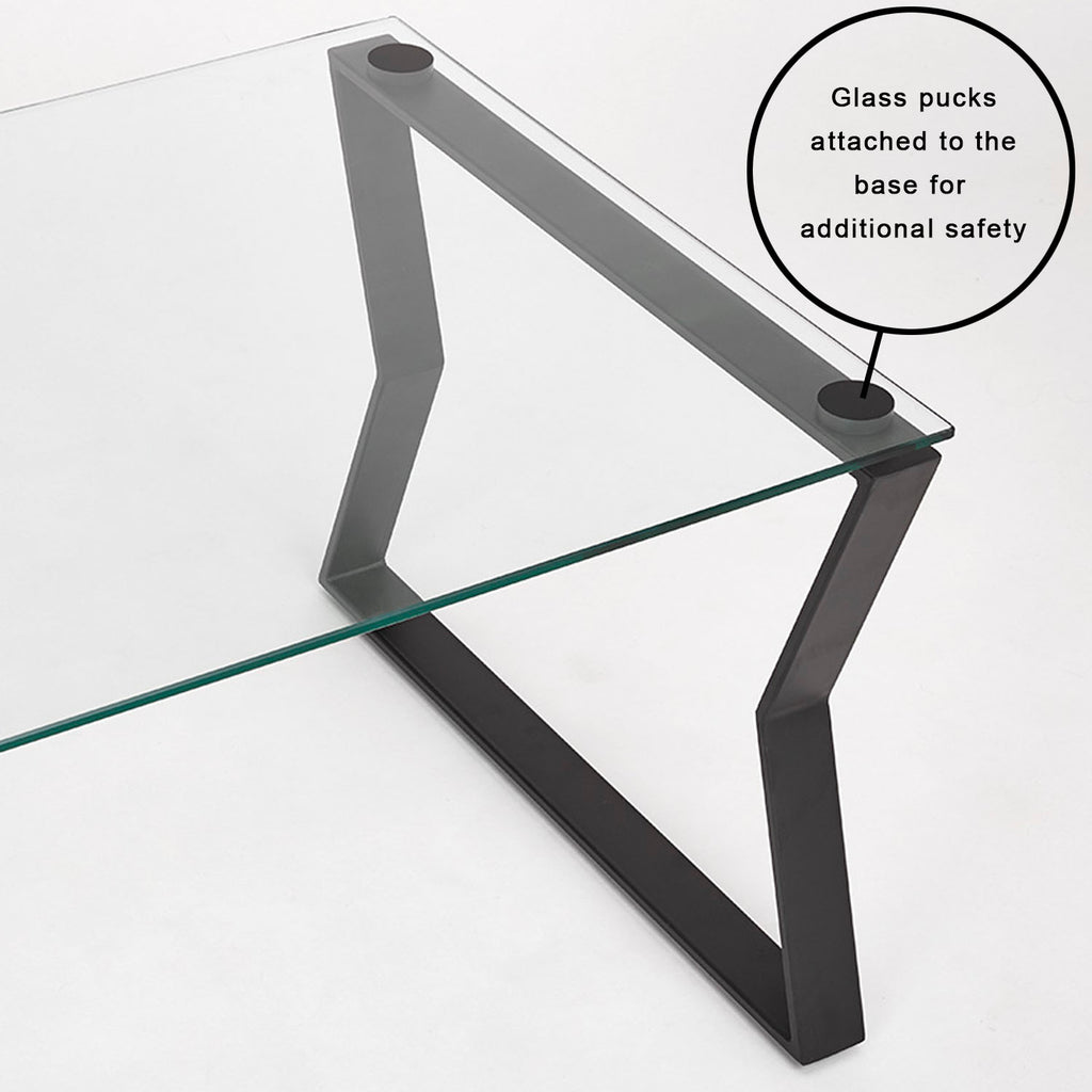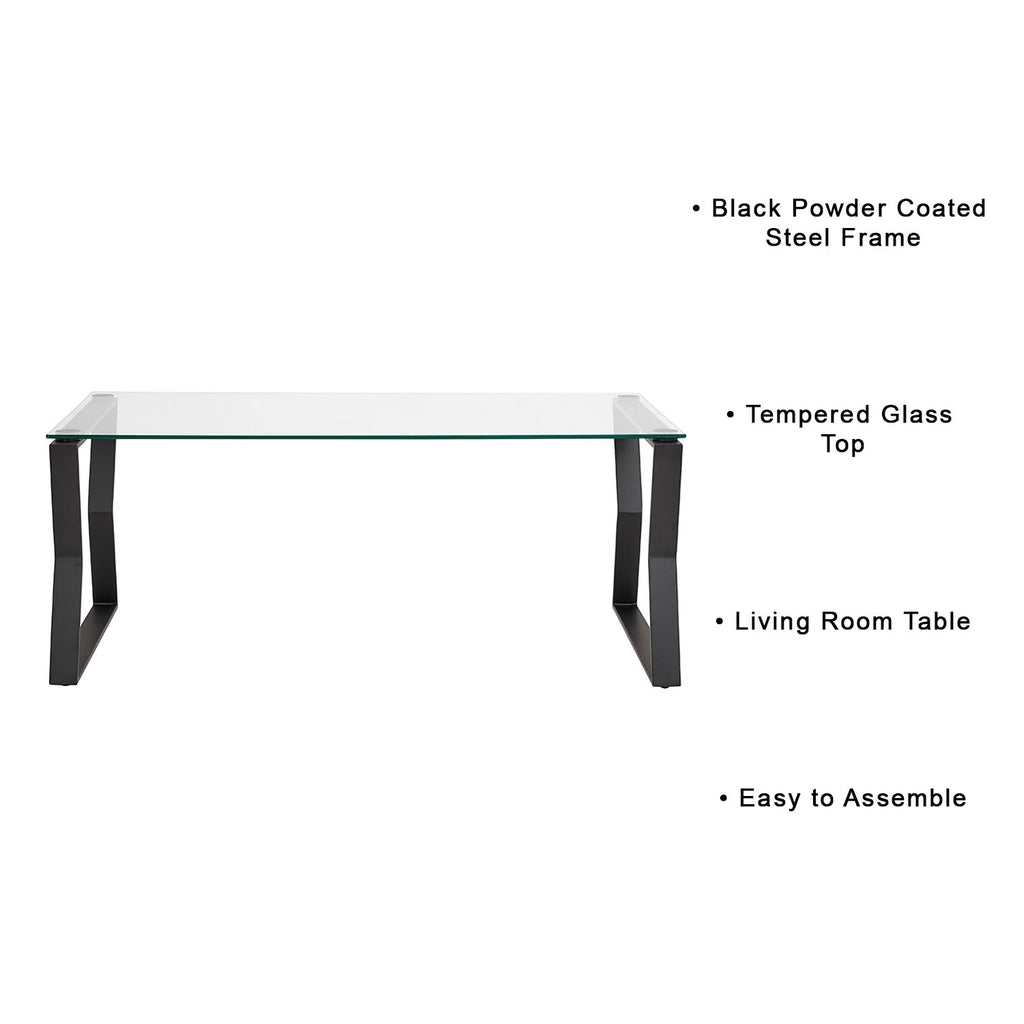 Elevate your living space with the Noa Contemporary Glass & Black Metal Coffee Table. Boasting a sleek tempered glass top, this coffee table is the epitome of modern elegance. Its sturdy black metal base provides a perfect contrast, ensuring this piece is not only functional but also a stylish addition to any contemporary living room.
