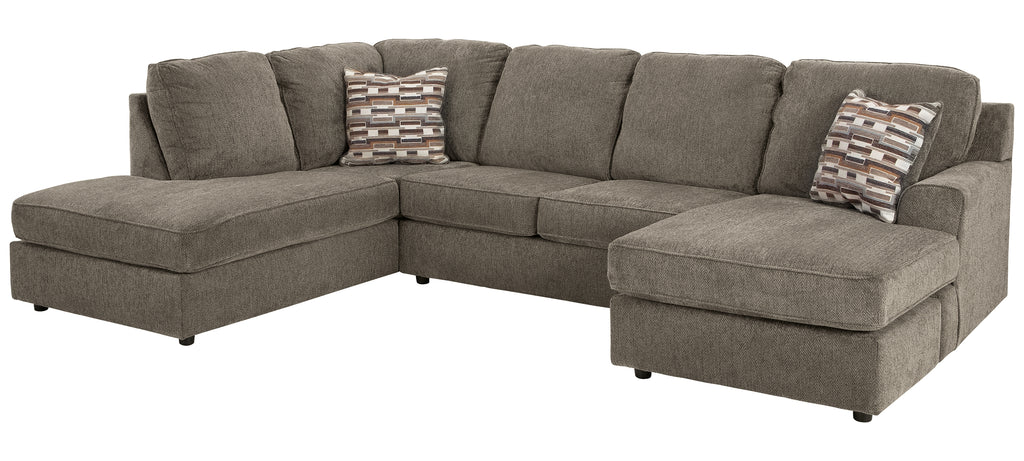 • Includes 2-piece sectional (left-arm facing corner chaise and right-arm facing sofa chaise) and storage ottoman