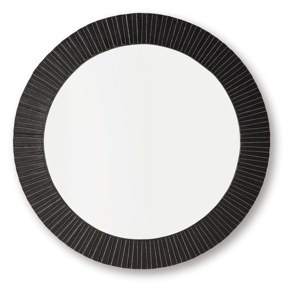 With its striking ribbed design and a contrasting black and antiqued silver finish, this accent mirror expresses modern sophistication in your space. The cast aluminum frame offers a sturdy and substantial feel, making it a lasting addition to your home. It’s simple yet elegant, reflecting both light and good taste.