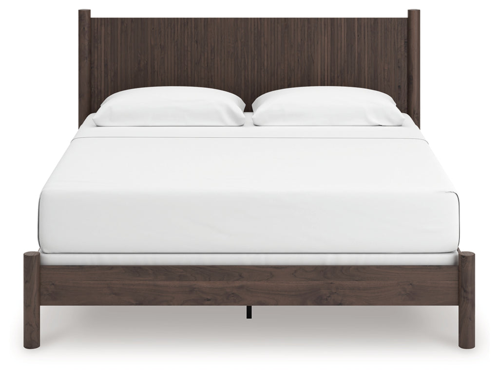 Crafted with both form and function in mind, this king panel bed brings a dash of retro-cool character to your modern boho aesthetic. Its reeded headboard adds an on-trend touch to the classic silhouette. Warmly welcoming with a rich brown finish, the bed pairs well with muted hues, earth tones and other neutrals alike. What a refined take on easygoing style.