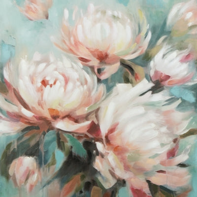 Style is blooming in this wall art. Graceful in presence, its pink florals dance across an aqua blue background—making it perfect for adding a touch of soft serenity to a bedroom or living room. And this detailed design is hand-painted, making each piece of artwork uniquely beautiful.